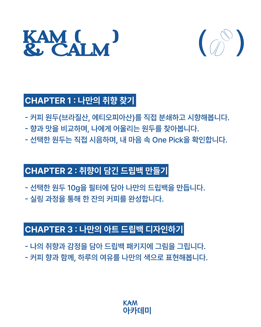 나만의 취향을 발견하고, 한 잔의 커피로 하루의 여유를 느낄 수 있는 시간입니다.