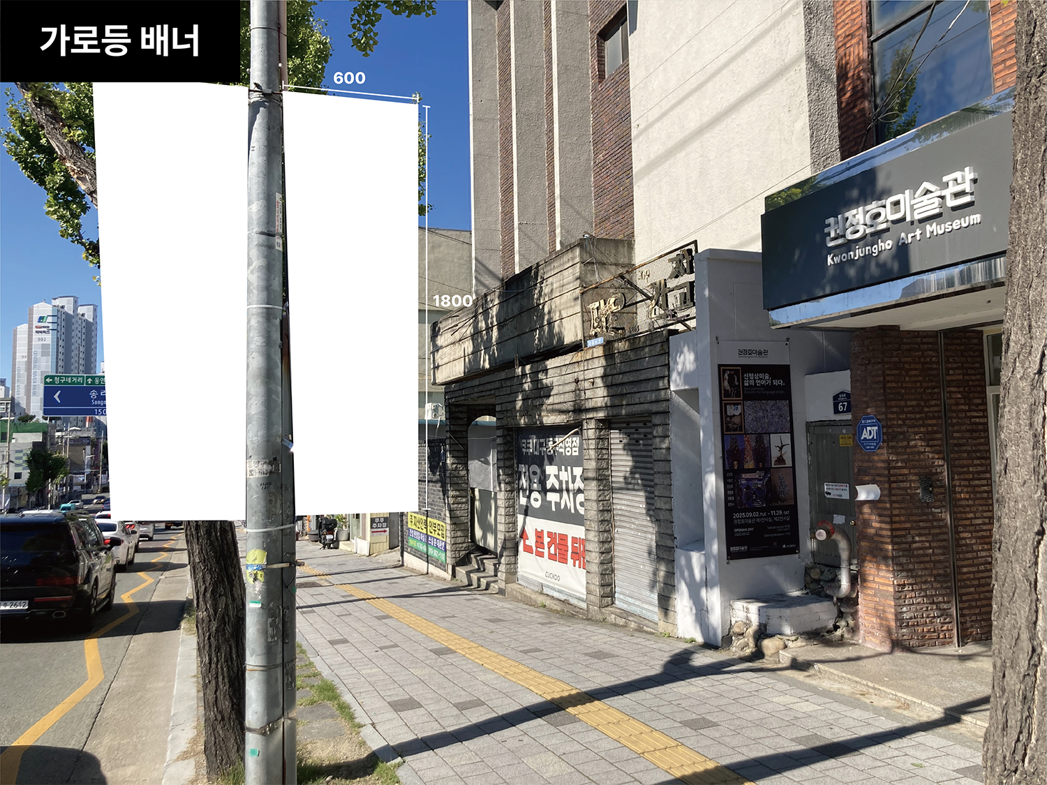 | 공간 | 엘리베이터 옆 | 1층 입구 옆 외벽 | 미술관 앞 가로등 | 미술관 왼쪽 외벽 |