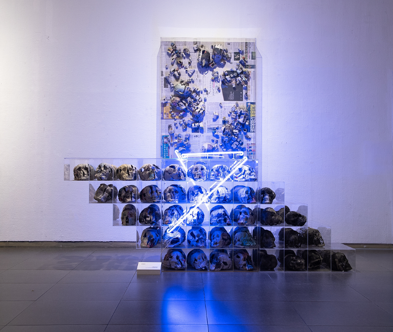 <기사로 본 우리 사회>, 2017, mixed media, 60x70x105cm(가변설치)