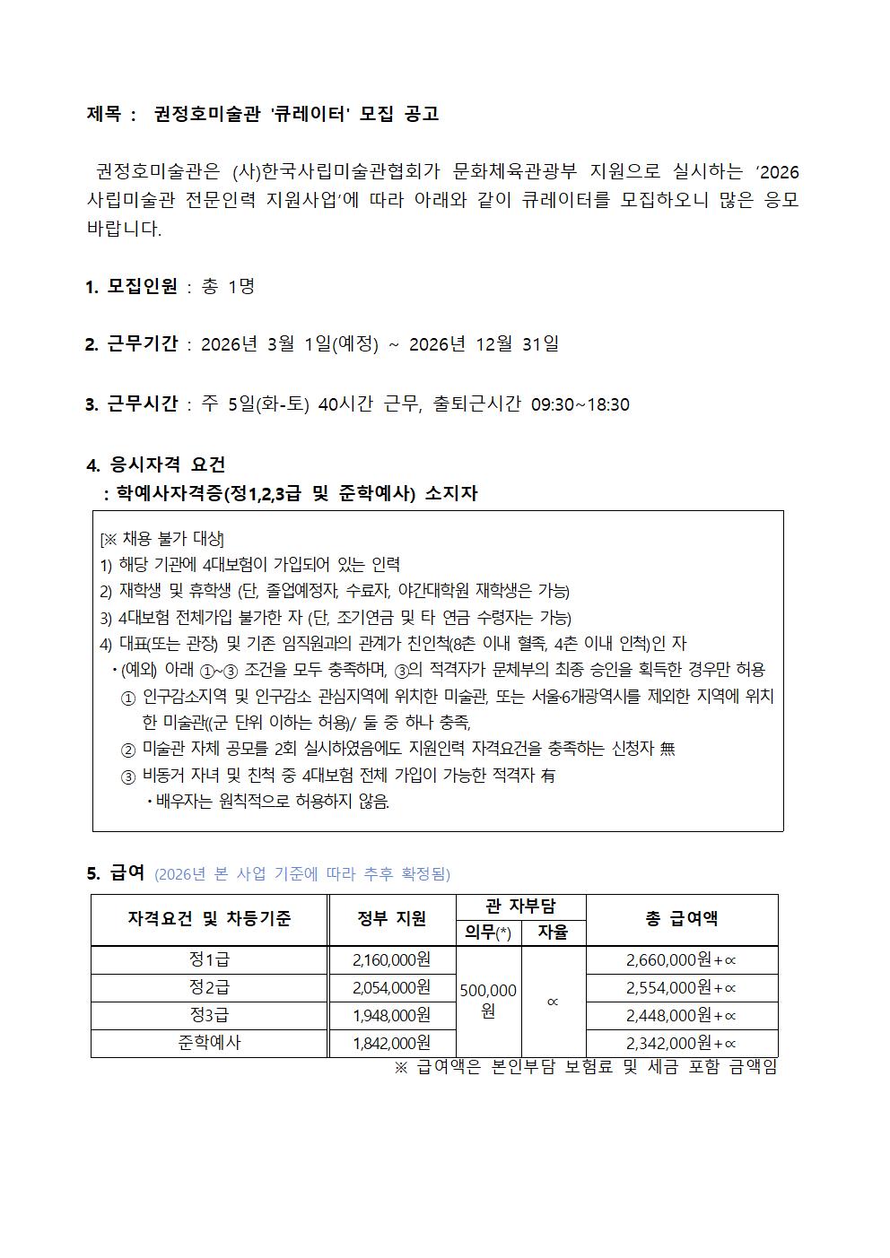 2026 권정호미술관 정기 대관 공고