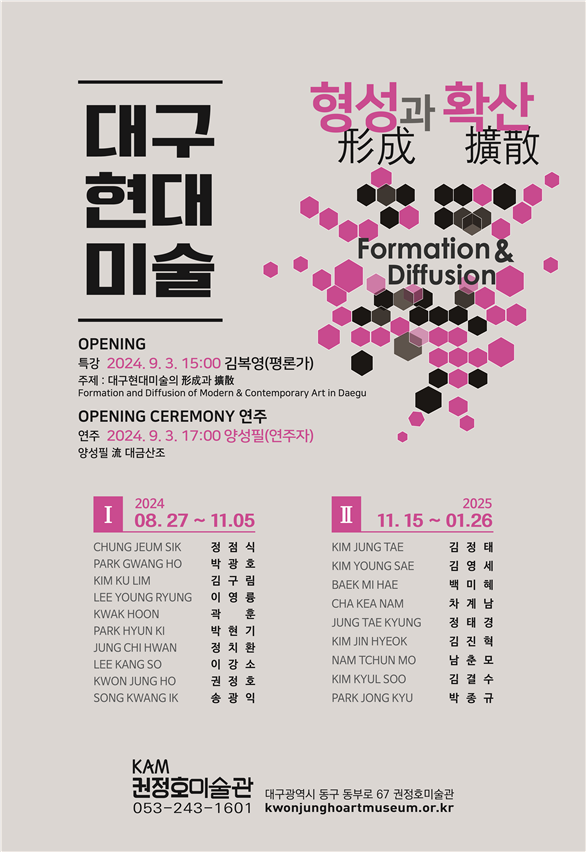 권정호미술관(대구시 동구 동부로 67)에서 ‘대구현대미술 형성과 확산’ 전이 15일부터 시작된다.지난 8월 27일부터 이달 5일까지 같은 주제명으로 열렸던 1부 전시에 이은 2부 전시이다.