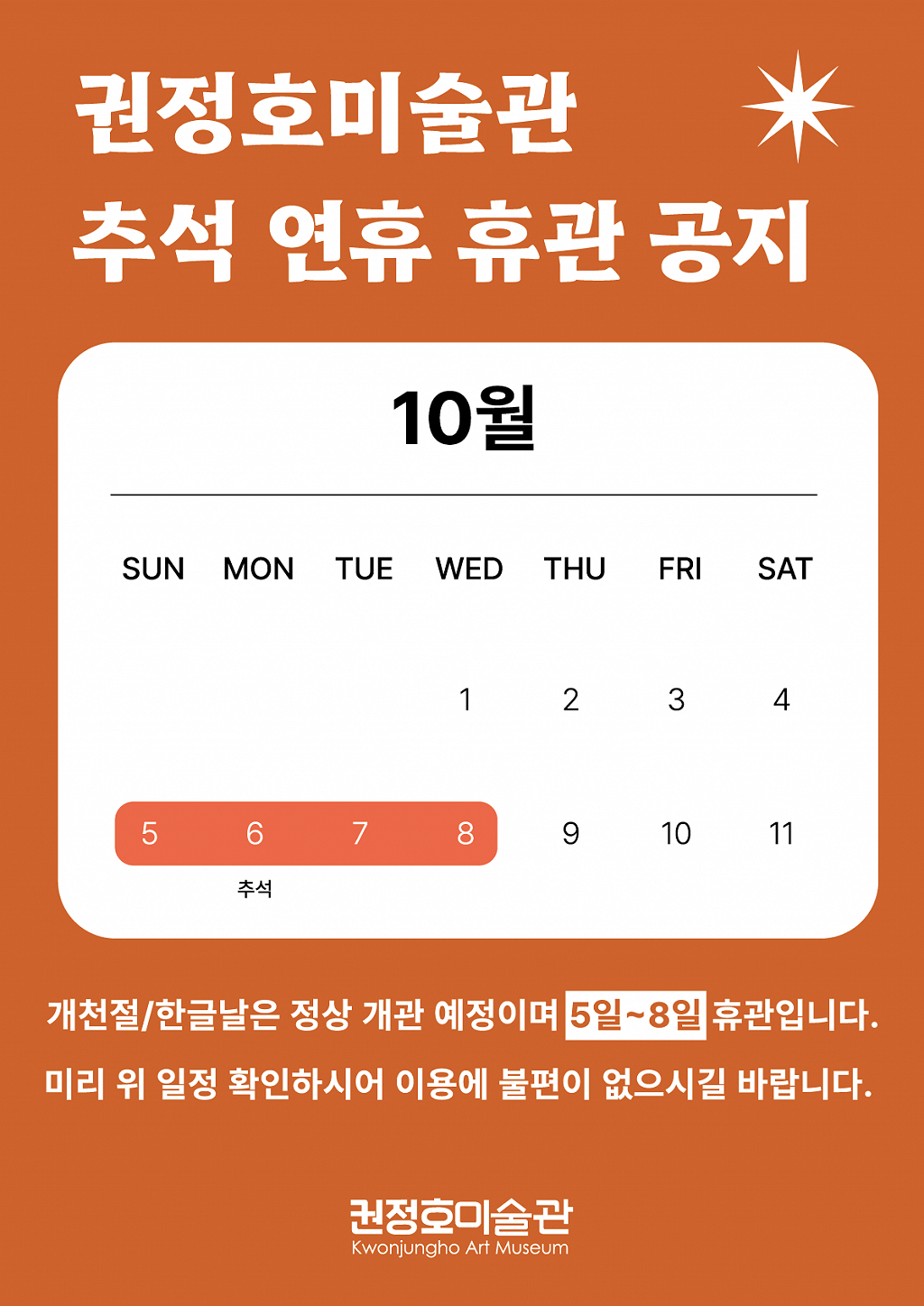 [공지] 권정호미술관 추석 연휴 휴관 일정 안내